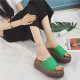 夏季欧美罗马外穿厚底松糕跟平底一字型凉拖鞋女2017鱼嘴绿色拖鞋