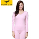 虎豹保暖内衣女士薄款内衣套装精梳棉莱卡蕾丝领修身正品秋衣秋裤