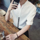 夏季港仔日系亚麻短袖衬衫男士加肥加大码棉麻衬衣半袖寸衣潮男装