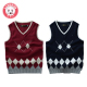 【天天特价】男童毛线马甲 学院格子男女孩毛衣背心 儿童V领马甲