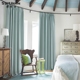 美式乡村窗帘窗纱A402棉麻纯色客厅蓝色窗帘布现代简约北欧落地窗