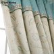 美式乡村棉麻绣花窗帘布C440新款新中式古典梅花卧室温馨绿窗帘