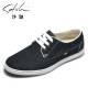 沙驰男鞋 休闲皮鞋男 真皮正品 系带休闲板鞋圆头黑色学生平底鞋
