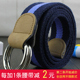 双环彩条纹布皮带 休闲户外编织帆布腰带有加长青年学生男女士