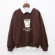 2017春秋新款学院风披肩不倒绒假两件加绒宽松套头圆领卫衣女