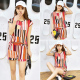 运动套装女夏季大码学生外套防晒衣条纹短裤时尚休闲运动服两件套