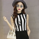 2017春夏新款韩版时尚高领短袖女竖条纹紧身上衣弹力t恤小衫潮