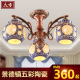 中式铁艺吊灯现代复古客厅灯卧室餐厅灯欧式灯陶瓷吸顶灯灯饰8035