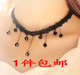 韩国项链波西米亚风黑色蕾丝水晶流苏短项链锁骨链女装饰项链