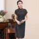 真丝弹力缎中式立领中长款旗袍连衣裙中式改良妈妈夏装休闲裙子女
