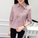 2017春款小清新文艺刺绣条纹宽松百搭衬衫女长袖翻领打底衬衣女