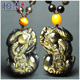 恒泰风水冰种彩虹眼黑曜石双貔貅吊坠2017鸡年男女情侣项链