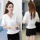 2017夏天新款韩版喇叭袖雪纺衫短袖v领娃娃衫百搭宽松上衣服女装