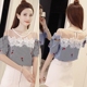 秋冬装加绒镂空大码女装百搭短款性感蕾丝上衣长袖学生打底衫厚