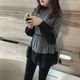 加肥大码女装韩版宽松条纹拼接上衣 胖mm显瘦中长款打底衫长袖t恤