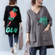 大码T恤女长袖宽松打底 春秋装新款长款胖MM花案字母包臀百搭体恤