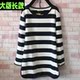 17新款春秋季韩版大码宽松简约粗横条纹纯棉中长款女式长袖t恤衫