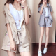 2017夏装新款韩版休闲气质棉麻刺绣花小西装套装短袖短裤两件套女