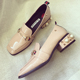 左岸潇同款拼色女鞋2016春新款性感金属头复古浅口方头单鞋女平跟