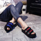 欧洲站夏獭兔毛厚底一字凉拖韩版毛毛平底鞋拖露趾拖沙滩女凉鞋托