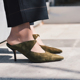 新美仓 缎面真丝内里透染小羊皮尖头三色小猫跟两穿鞋 夏季新款