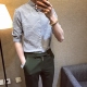 日系复古韩国东大门理发师英伦风修身潮男休闲男士五分袖短袖衬衫