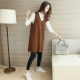 春秋装女装韩版毛衣女套头中长款宽松大码V领学生针织背心马甲女