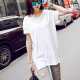 春秋季韩国中裙中长款连衣裙女大码女装宽松中长裙棉白色T恤裙子