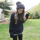 韩国加绒加厚卫衣女套头宽松大码女装拼接长袖保暖外套女学生秋冬