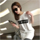 春夏季女装韩版宽松中长款T恤女短袖简约大码印花打底衫学生上衣