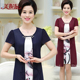 中老年女装夏装短袖雪纺连衣裙中年人妈妈装40-50岁中长款假两件