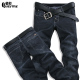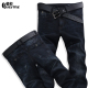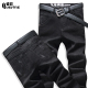 潮流青年男装抓毛黑色牛仔裤男士春款休闲直筒修身男裤子韩版长裤