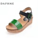 Daphne/达芙妮夏新款撞色仿木纹厚底坡跟露趾凉鞋1014303032