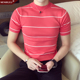 春夏季新款男士韩版修身条纹半高领针织短袖潮青年英伦时尚打底衫