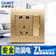 正泰开关插座正版86型香槟金色墙壁电源带1一开五孔单控单开面板5