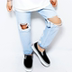 潮破洞男童牛仔裤2017夏款宽松后裤脚破旧港范十足学生裤子DS