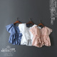 好甜美!日系层层荷叶边 V领单排扣飞飞袖高腰短款女棉衬衫小上衣