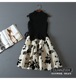 秋季新款日系红牌 侧绑带无袖针织上衣+植绒吊带连衣裙套装7438