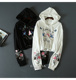 日系新款OS 可爱玫瑰花刺绣宽松短款长袖套头卫衣上衣外套8141