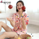亲嘴猫睡衣女夏季短袖冰丝可爱卡通丝绸开衫家居服套装宽松居家服