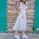 春夏季新款韩版连衣裙女装中长款A字裙V领长裙高腰学生背带裙裙子