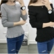 女装针织衫长袖毛衣女套头木耳边纯色上衣秋冬修身一字领打底衫