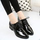 2016春季新款漆皮厚底低帮女鞋低跟平底复古小皮鞋松糕时尚女单鞋