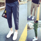 潮男夏季林弯弯LES帅T基本款纯色休闲九分裤男韩版修身小脚9分裤