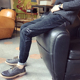 冬装新款林弯弯LES帅T韩版修身英伦纯色小脚裤百搭青年牛仔裤男潮