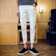 春装林弯弯韩国水洗浅色磨白九分裤男韩版显瘦破洞小脚牛仔裤子潮