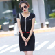 2017春夏季韩版腰带修身圆领包臀短款连衣裙女短袖打底裙T恤裙子