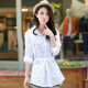 2017春装新款韩版纯棉大码修身格子衬衫女装长袖磨毛打底衬衣外套