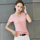 2017韩版女装拼接短袖纯棉t恤女v领打底衫纯色百搭学生半袖上衣