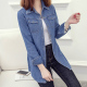 春秋珍珠扣下口袋牛仔衬衣女长袖牛仔衬衫中长款学院风寸衫外套潮